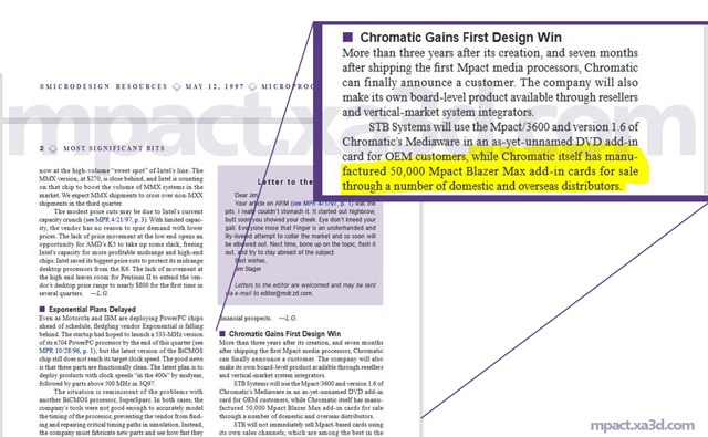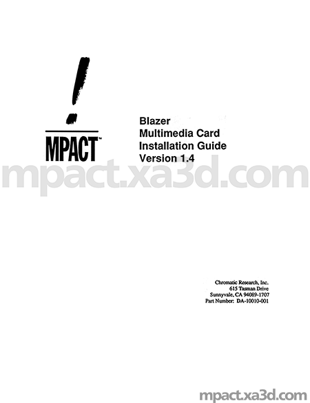 In the interest of historical correctness, the following four images are offered in support of the Mpact PCI add-in Multimedia Board Model Name as "Chromatic Mpact Blazer."